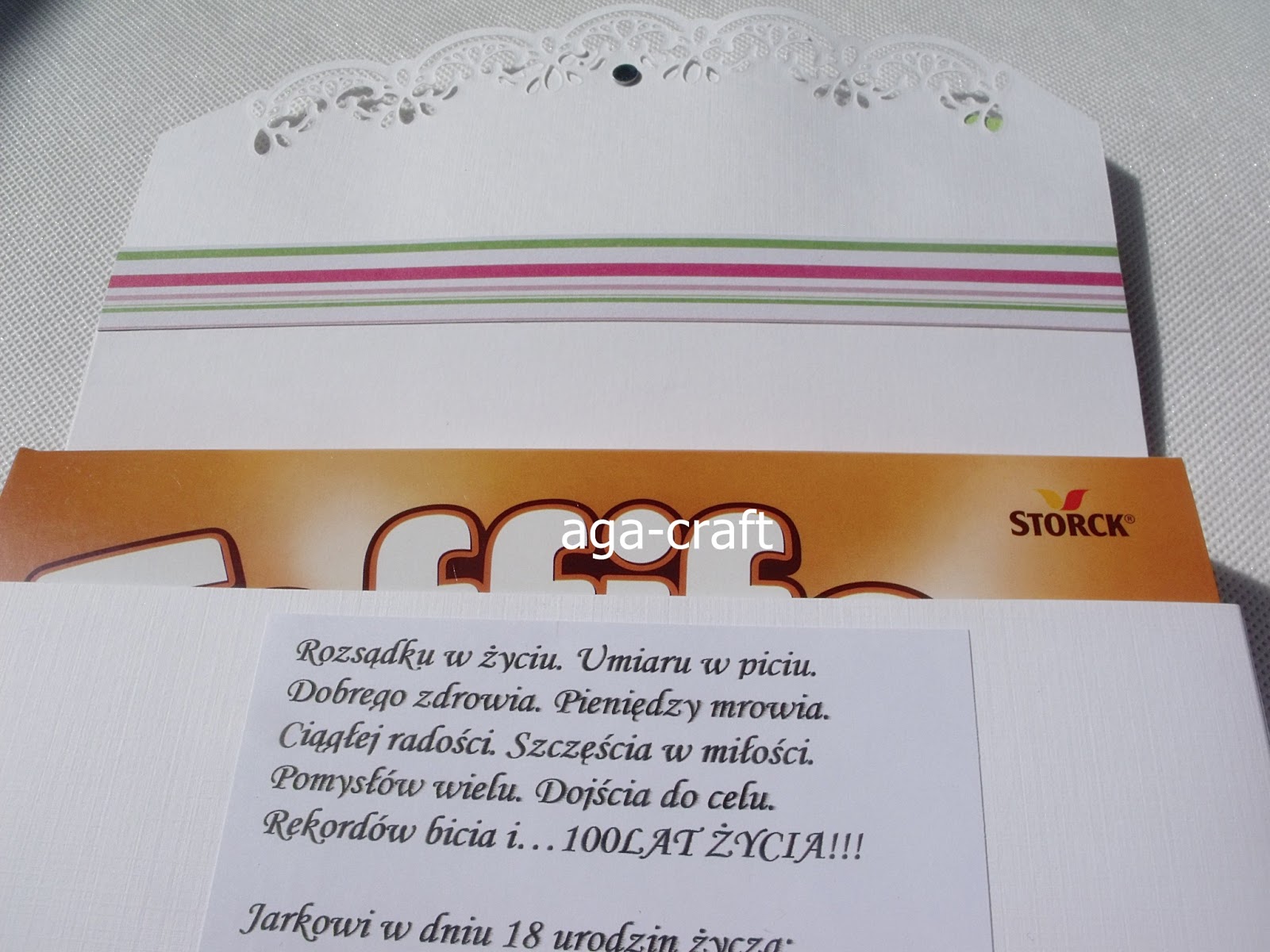Siostrzeniec kończy 18 lat i za chwilę jedziemy się bawić :) W prezencie dostanie opakowanie na czekoladki ze słodka wkładką i ... :) Jarek jest szczuplutki i bardzo wysoki. Wygląda dokładnie jak chłopak ze stempla :) Jarku- najlepszego od nas wszystkich :)