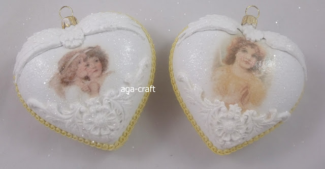 Główki aniołków na serduszkach - takie bombki lubię robić :) Papiery IDT, serduszka 9 cm z Inspirello. Najpierw zrobiłam 3, potem jeszcze 3 a potem nie mogłam się zatrzymać :)